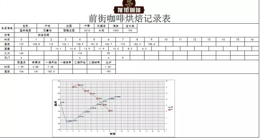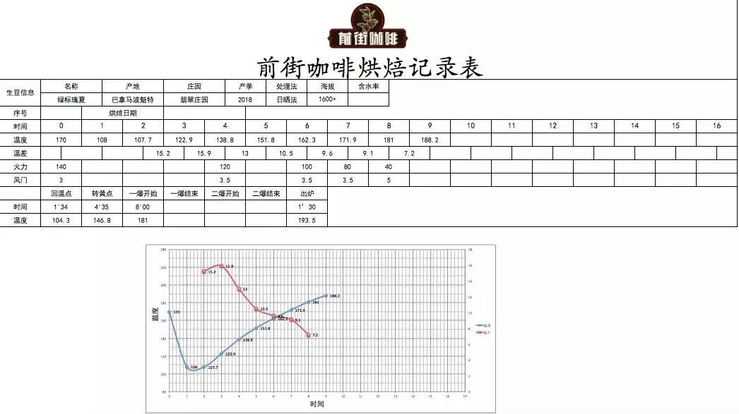 The temperature of the bean is 170, the yellowing point is 4: 40 ", the first explosion begins at 8" 39 ", the temperature is 182", and the development of 1 "explosion is 30", the temperature is 189.