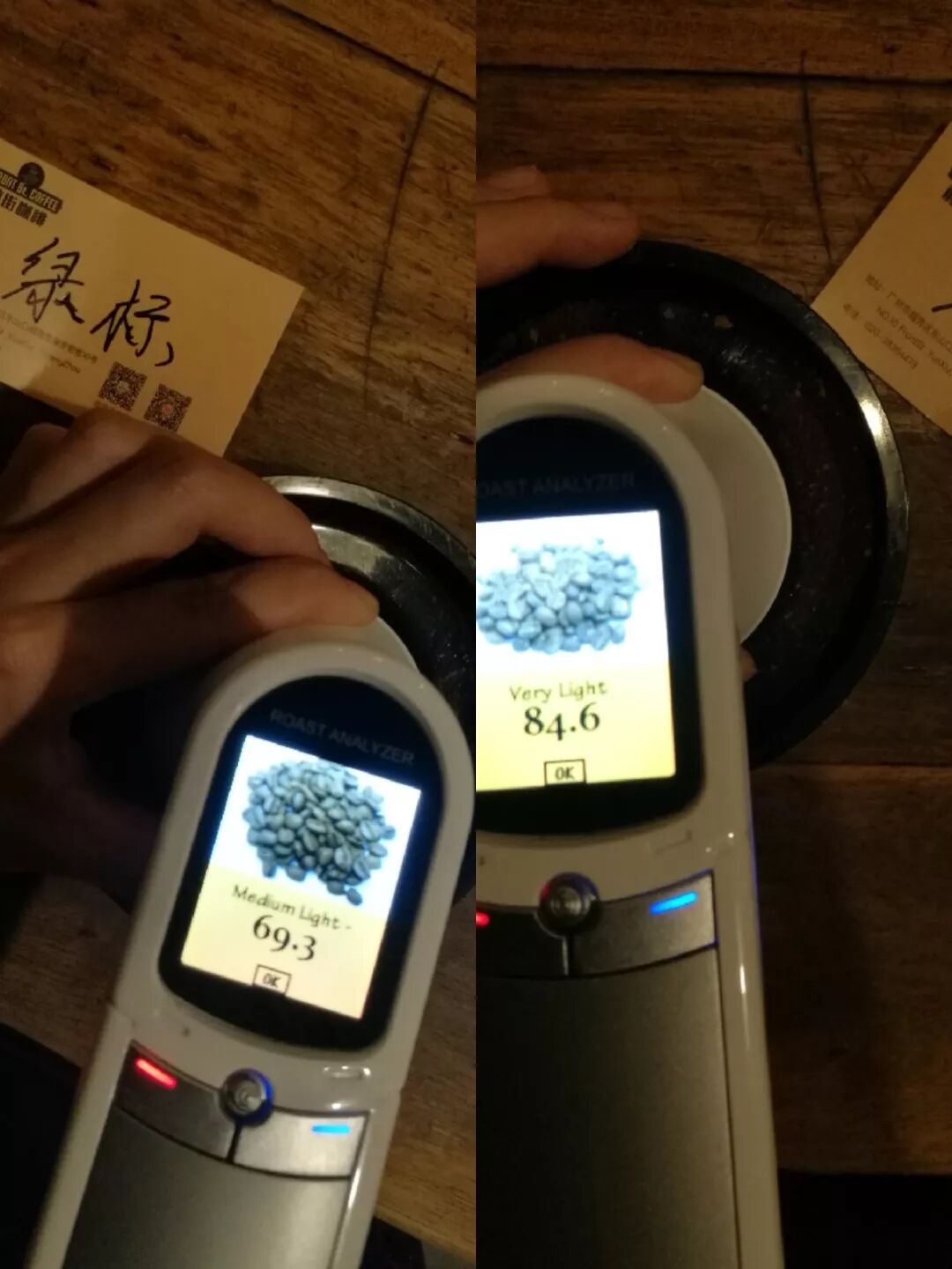 Agtron bean color value is 69.3 (left), Agtron pink value is 84.6 (right), Roast Delta value is 15.3.