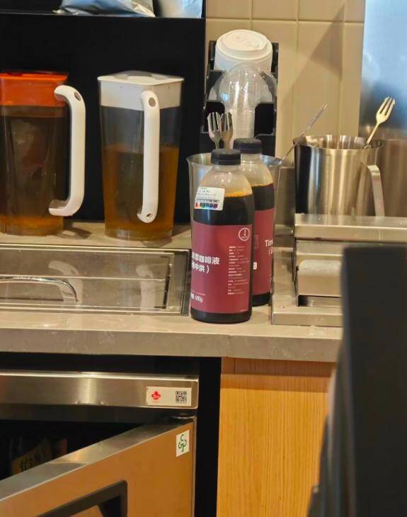 Eye-catching users speculated through the outer packaging and labels on the plastic bottle body that the coffee liquor used in the store may have been uniformly produced by the factory and sent to the store in the form of a frozen product. After receiving it, employees will thaw it in advance according to the product sales., and process it into cold extract coffee for sale within the specified expiration period after the material is opened.