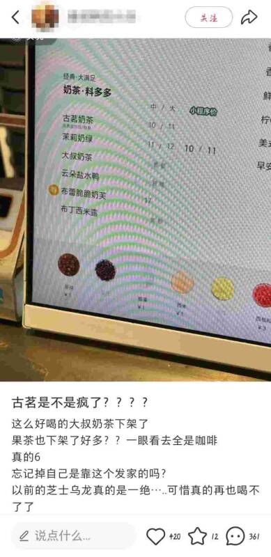 I never thought that this post would attract the attention of many Guming users after it was released. It is reported that "Uncle Milk Tea" is a permanent product in the ancient tea menu and can be said to be a "veteran milk tea." Therefore, in the eyes of many people, the brand will not remove this signature product.
