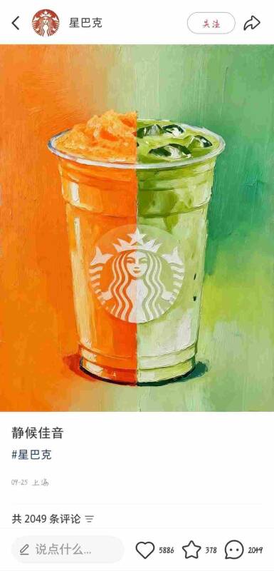 On the eve of National Day, Starbucks China released a poster titled "Waiting for Good News" on the Little Red Book, accompanied by an orange and green Starbucks drink. Unexpectedly, this post attracted the attention and discussion of a large number of Taylor Swift (nicknamed "Mi") fans not long after it was posted.