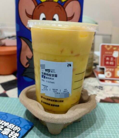 According to the clerk, to make a cup of "raw coconut poplar branch nectar", you must first take out several raw materials such as coconut milk jelly, mango puree, coconut milk, and jasmine tea from the refrigerator, weigh them one by one, add them into a snow pot, and stir them evenly. Only then can you pour them into a packed cup to produce it. The cumbersome steps make many people sigh that this should be one of the most difficult drinks for Lucky to make at present.