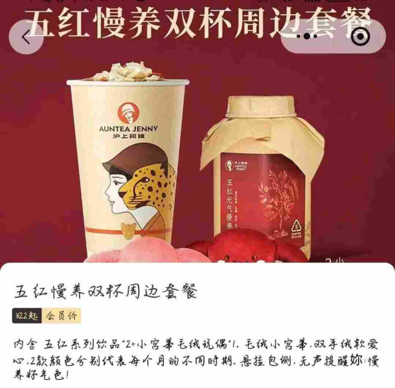 Recently, Aunt Shanghai launched a new product "Five Red Vitality Slow Care Bottle" and designated a peripheral package for this new product online. Consumers who purchase this package can receive a "Xiaogongju Plush Doll."