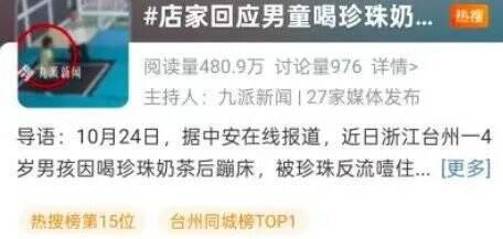 Recently, terms such as "Three-year-old child drinks pearl milk tea" and "Store responds that boy suffocated after drinking pearl milk tea" have hit the hot searches on Weibo, arousing widespread attention and discussion from all walks of life.