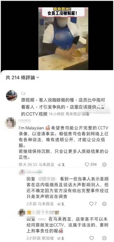 With the fermentation of the incident, Zus Coffee issued a statement in three languages on the public platform on November 10, saying that the company had actively contacted relevant people to understand the details after the incident and provided company and support for the staff involved. The company calls on the public to respect the privacy of the employees involved and not to share or forward personally identifiable videos without permission; at the same time, it hopes that the public will stop disseminating unverified content.