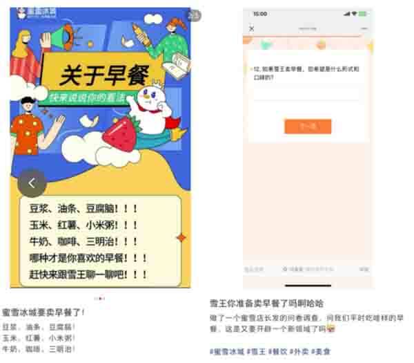 It is reported that the source of this information began with a questionnaire survey circulated in community promotion and circle of friends. Judging from the screenshots posted by users, the official account of Mixue Ice City released a questionnaire about "breakfast" to a group of fans. The questions involved the type of breakfast they liked, the cost of purchasing breakfast, etc., as well as the respondents 'wishes. Form and taste.
