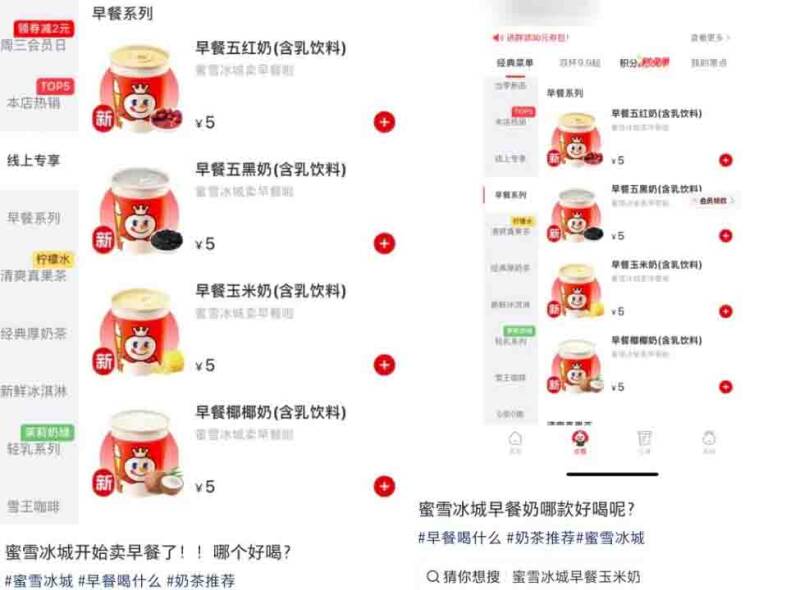 In addition, some netizens found that a "Breakfast Series" has been quietly added to the ordering interface of the Mixue Ice City Mini programs, and a variety of dairy drinks with different flavors are put on shelves, with an average price of 5 yuan. Various signs have sparked speculation among fans that the Snow King should be taking a break at the breakfast track, shouting,"Snow King has lowered the price, I can eat it every day."