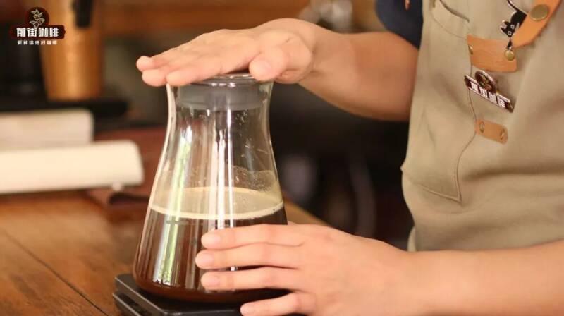In addition, considering that the ice cubes used daily in Qianjie are large and have a slow dissolution rate, it is necessary to appropriately increase the proportion of water and reduce the amount of ice cubes. The ratio of powder to water to ice is finally determined to be 1:8:4, that is, 20g Coffee powder, 160g purified water, 80g ice cubes. Also put in a pot and stir well, soak for 12 hours, and filter out the coffee grounds for later use.