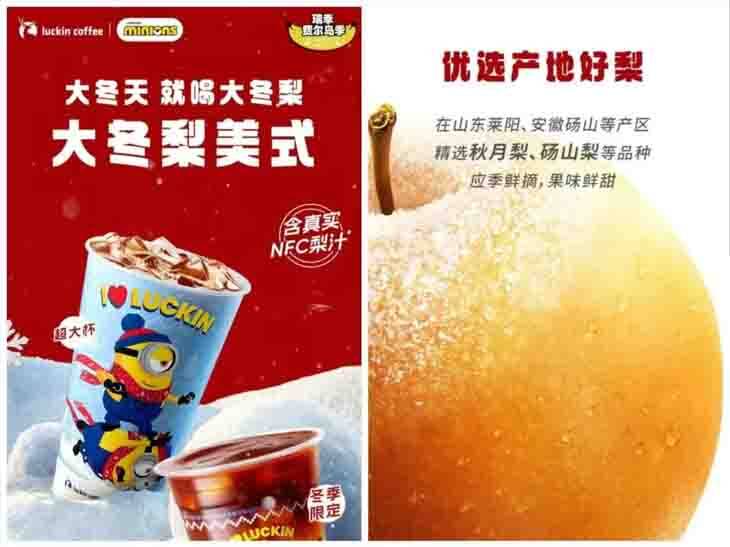 As a result, Lucky, who has always been very obedient to advice, recently launched a winter limited drink "Dadongpear American". Once the official promotion was released, the long-awaited fans had no time to look closely at the promotional poster. They cheered "The American Return of the Big Frozen Pear" and couldn't wait to place an order as soon as the new product was launched.