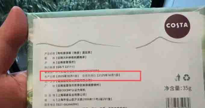 Recently, some consumers reported to Zhongxin Jingwei that the Costa organic Pu 'er tea (cooked tea) they purchased on the e-commerce platform showed that its shelf life was actually 100 years.