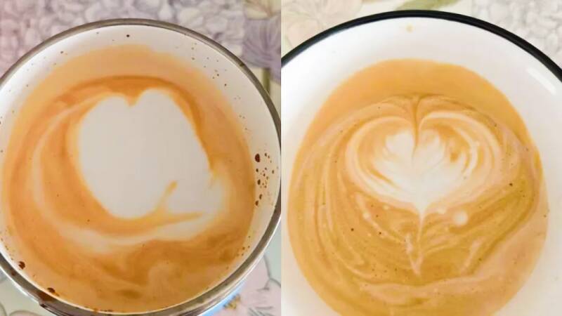 Putting aside other shortcomings, we can see from the pattern alone that these two drawing patterns are simply different. There is almost no gap in making them, just two cups before and after, as if this friend has suddenly become a talented flower player. To be reasonable, the reason why such a drastic change occurred does not rule out that these friends are genius drawing flowers, but more often, it is because everyone has already learned the skills of drawing flowers and has the ability to draw flowers. The ability to draw flowers is just because they have not been able to produce any milk foam suitable for drawing flowers, so they cannot make beautiful drawing patterns. Because of this, when these friends sent out a high-quality lather milk bubble, they were able to easily create a beautiful lather pattern. Of course, we can't rule out that it was an accident.
