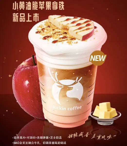 At the end of the Spring Festival holiday, Ruixing official announced that the small butter series is popular among consumers to launch a new drink,"small butter crispy apple latte."
