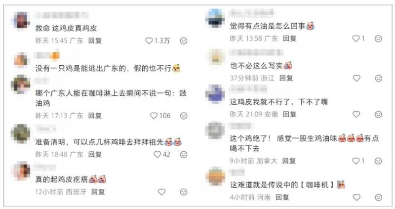 "No chicken can escape from Guangdong, not even a fake one","Help me, this chicken skin is really chicken skin","Prepare for Qingming Festival, you can order a few cups of chicken coffee to pay homage to our ancestors","This chicken is amazing! It smells like raw chicken oil "," Is this the legendary [coffee machine]?"