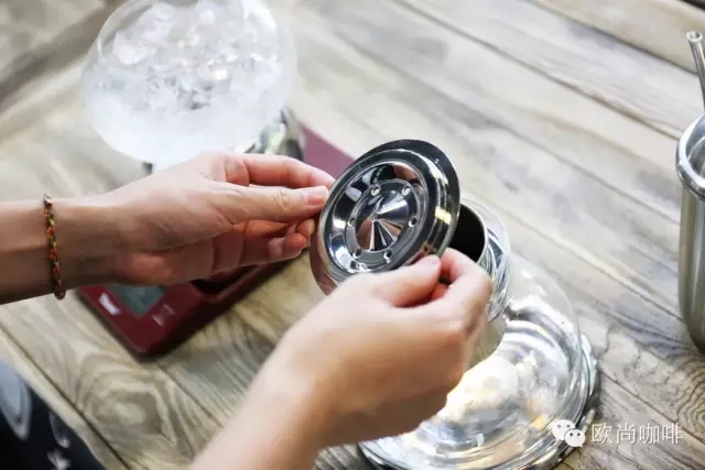 Assemble the curling kettle. Rotate the valve stem to adjust the dripping speed of ice water. Too fast dripping speed may lead to insufficient extraction and lack of flavor. Too slow can lead to excessive extraction, which may lead to bitterness and astringency. This time we are using a drip rate of 40 drops per minute, about 2 drops in 3 seconds.